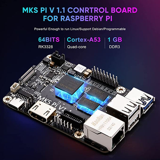 - Powerful Hardware Support: This 3d printer mainboard equipped with QUAD-CORE ARM Cortex-A53, CPU-64BITS-SOC, 1GB-DDR3 onboard memory.